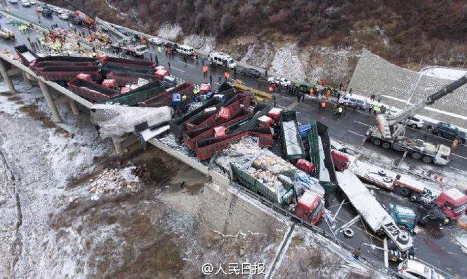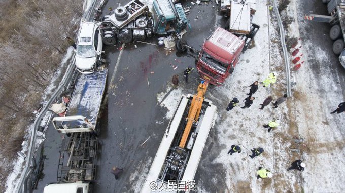 Как сообщает агентство Xinhua, авария произошла на автомагистрали, соединяющей города Пекин и Куньмин. В результате массового ДТП, участниками которого стали 56 транспортных средств, погибли 17 человек, ещё 37 получили травмы различной степени тяжести. Движение по дороге перекрыто.