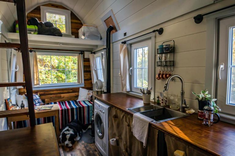 Самодельный Tiny House, построенный молодой парой, в котором они теперь путешествуют со своей собакой
